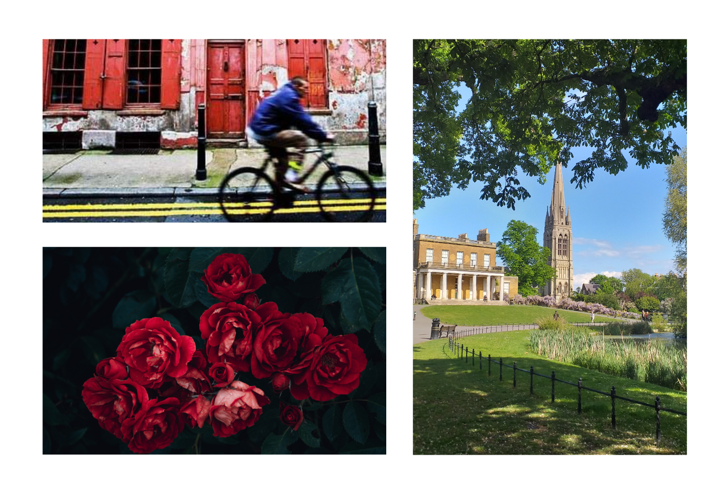 East end boys and west end girls. Second-hand leather jackets. Creative, new, old, beautiful, gritty, high and low. All rubbing along together. It’s a wet spring. Roses from the Columbia Rd street market. Georgian architecture. A hint of dustiness. An earthy lush wetness you can almost taste.